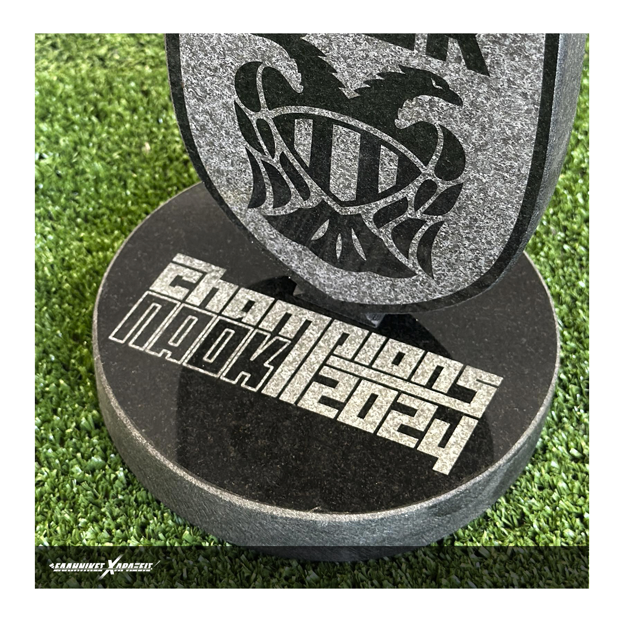 Η δημιουργία του τροπαίου για την ΠΑΕ ΠΑΟΚ είναι ένα έργο που συνδυάζει την τέχνη, την παράδοση και την τεχνολογία. Κατασκευασμένο από γρανίτη Shanxi Black A’, το τροπάιο αυτό δεν είναι απλώς ένα βραβείο, αλλά ένα μνημείο που τιμά την ιστορία και την κληρονομιά της ομάδας.